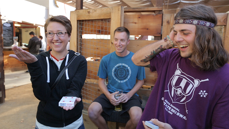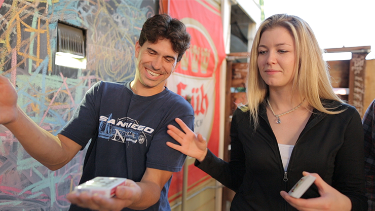To kortspil præsenteres for to tilskuere. Et åbent spil med blå kort og et forseglet spil med røde. Det forseglede spil placeres i hænderne på den ene tilskuer, mens den anden tilskuer vælger et kort fra det åbne spil. Få øjeblikke senere er det valgte kort forsvundet fra det åbne spil og dukker umuligt op inde i cellofanen på det forseglede spil.