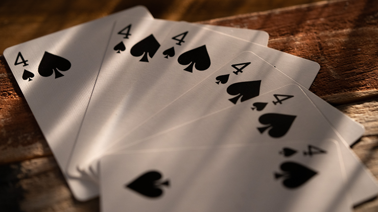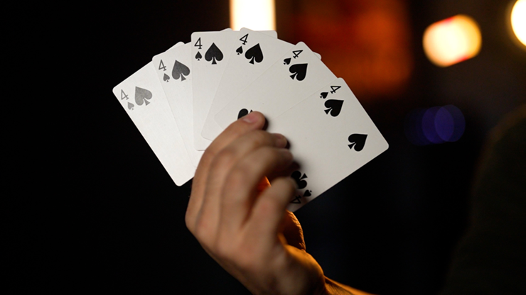 Du begynder med at vise fem kort med blanke forsider og ét kort – klør fire. Klør fire stryges mod to af de blanke kort, og de forvandles til klør fire! Dette gentages med de resterende blanke kort, og til sidst er hvert eneste kort blevet til klør fire. Som prikken over i’et vises alle kortene – både for- og bagside – helt åbent!