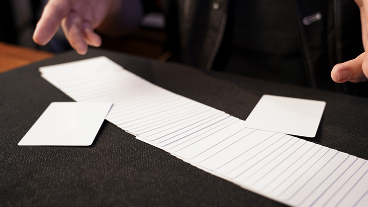Magikeren spreder et spil kort og beder publikum tænke frit på et hvilket som helst kort. Med en subtil gestus forsøger han at fange tanken – vælger et kort, vender det og placerer det tilbage i spillet. Når kortene spredes igen, er det tænkte kort forsvundet. Kun ét kort ligger med bagsiden opad – og det må være det. Men nej. Med et snap afsløres, at kortet er blankt. Hele spillet er blankt. Det tænkte kort har aldrig været der – det har hele tiden været et andet sted. Måske i en pung, under en måtte, i en lomme... eller på publikums egen stol.