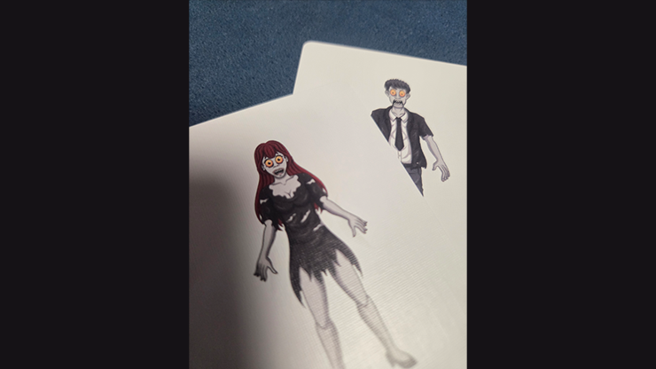 Her får du en frisk og dødbringende version af den klassiske WILD CARD-effekt! Du viser en bunke kort med zombiedræbende MENNESKER og ét enkelt Zombie-kort. Når Zombie-kortet rører et menneske, forvandles det straks – og snart står du med en hel bunke zombier! En visuel mutation, der rammer publikum som en virus. Pas på – vi bliver alle zombier snart!