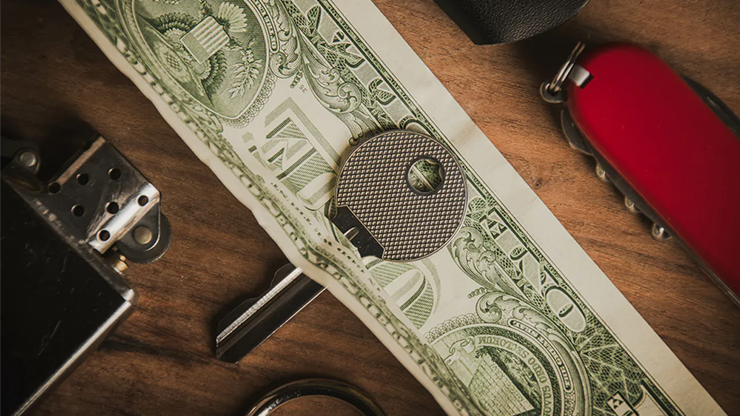 Tænk på den forsvindende flaske eller pen. Nu med en nøgle. Tilskueren mærker nøglen i sedlen – og den forsvinder i det øjeblik, du krøller den sammen.