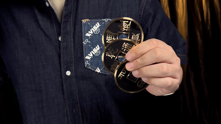 Du griber tre antikke kinesiske mønter ud af luften og lader dem forsvinde én efter én – lige så elegant som de kom. Mellem hver fremkomst og forsvinden kan du vise begge sider af mønten og lade publikum se, at dine hænder er fuldstændig tomme. Ingen ekstra mønter, ingen skjulte gimmicks.