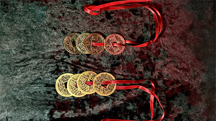 • Den sidste mønt fjernes synligt – selv mens tilskueren holder den. Disse autentiske Feng Shui-amuletmønter er lidt større end dollar-mønter og 100% undersøgelsesbare.