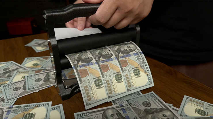Den spytter flere sedler ud på stribe, perfekt til optrædener i enhver setting, og fungerer med valuta fra alle lande.