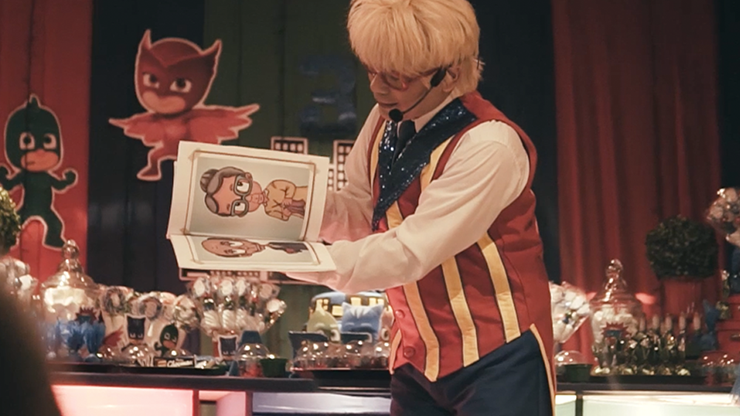 Denne situation gentager sig flere gange, og effekterne intensiveres – en zombiehånd dukker op bag albummet og driller tryllekunstneren og børnene.