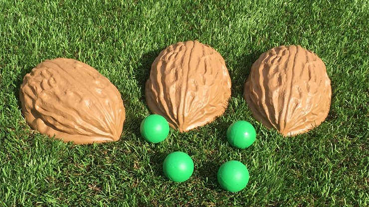 Disse smukke, håndmalede og nærmest uopslidelige skaller i hård resin lader dig udføre det traditionelle shell game med en hård 1 3/4" ært – og alligevel er effekten fuldstændig mekanisk. Ingen fingerfærdighed nødvendig. Det er praktisk talt selvvirkende.
