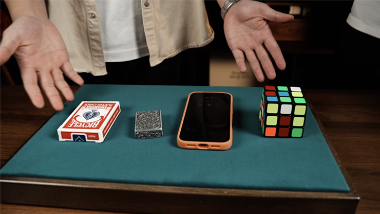 Tryllekunstneren låner fire tilfældige hverdagsgenstande fra publikum – en pung, telefon, airpod eller enhver lille genstand, tilskueren har på sig. Alle genstande placeres åbent på close-up måtten.